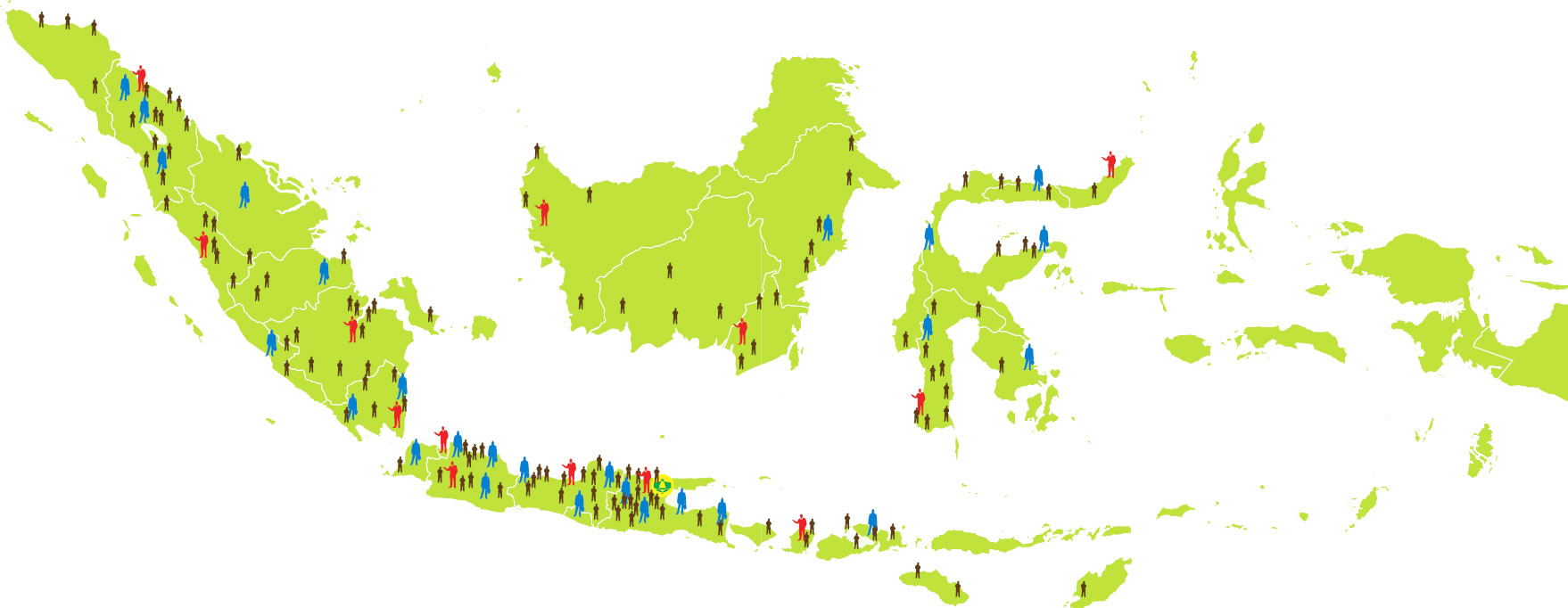 Didukung lebih dari 224 Petugas Pemasaran berpengalaman yang tersebar di tiap propinsi dan kabupaten di hampir seluruh wilayah Republik Indonesia. Dan masing-masing area dipimpin oleh seorang Area Manager. Jaringan pasar Domestik didukung oleh lebih dari 107 distributor dan lebih dari 5.000 kios. Adapun pengembangan pasar ditangani oleh kantor pusat.